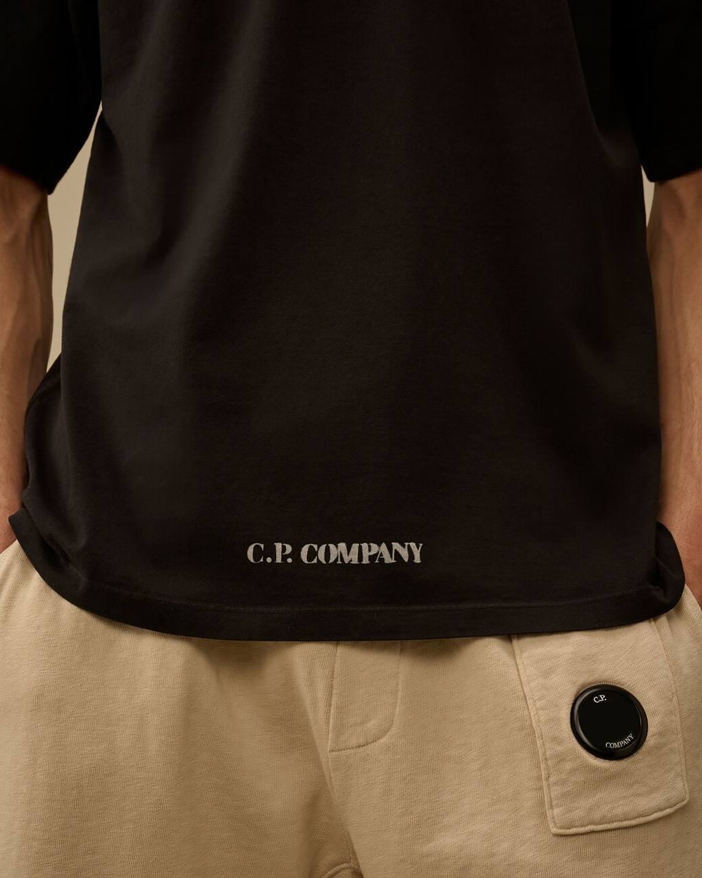 Футболка CP Company чорна з написом внизу та на спині. ​Ця чорна футболка від культового італійського бренду CP Company — ідеальне поєднання інноваційного текстилю та зухвалого вуличного стилю. Модель створена для тих, хто не звик до компромісів між комфортом та візуальною естетикою.